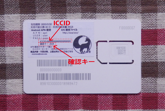 ・確認キー(SIMの台紙に記載された、アルファベット及び数字3文字)